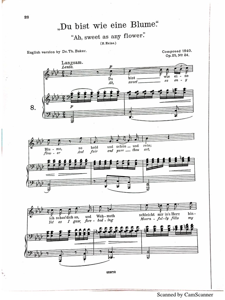 Du Bist Wie Eine Blume Sheet Music Piano Voice Pdf Download Oktav